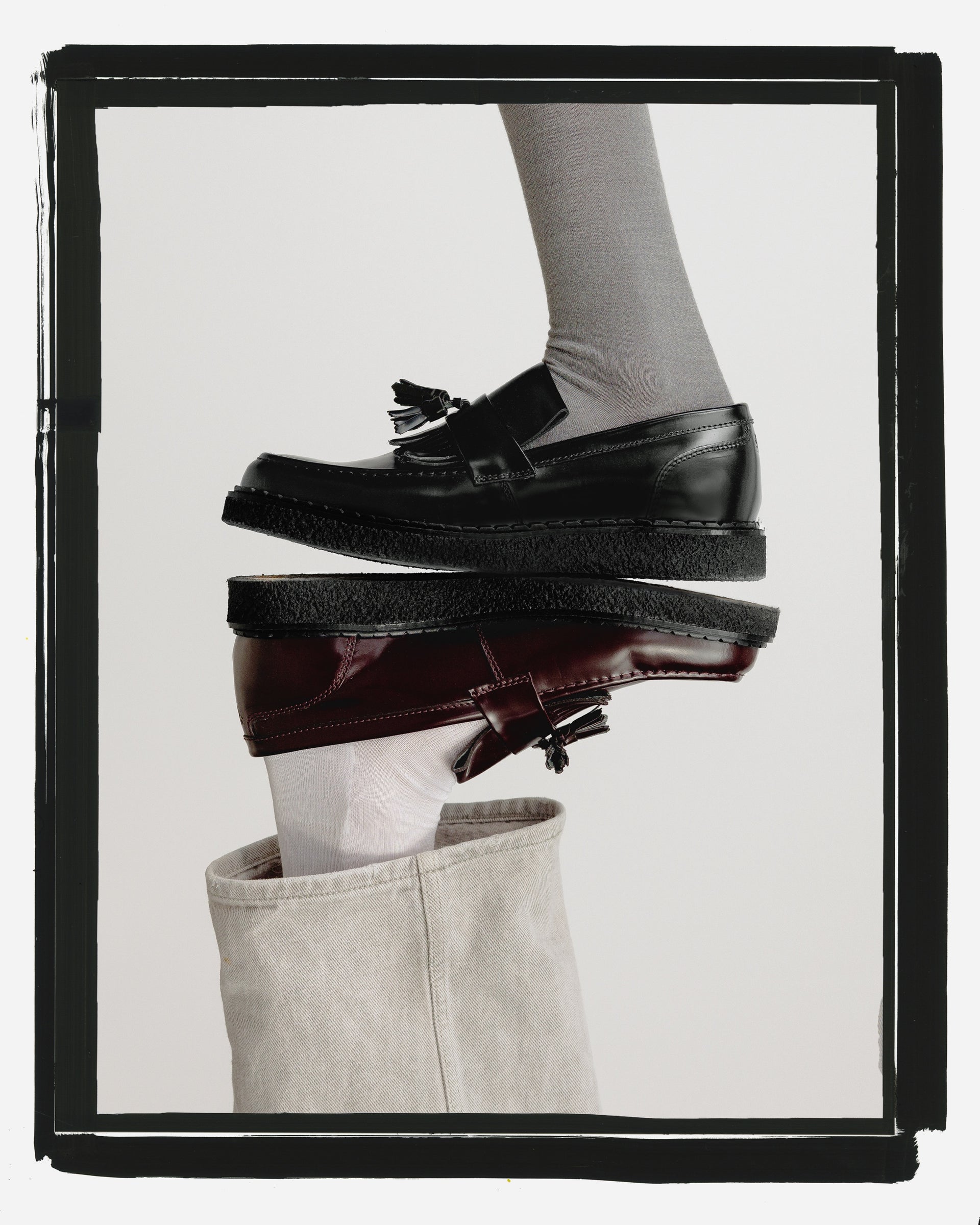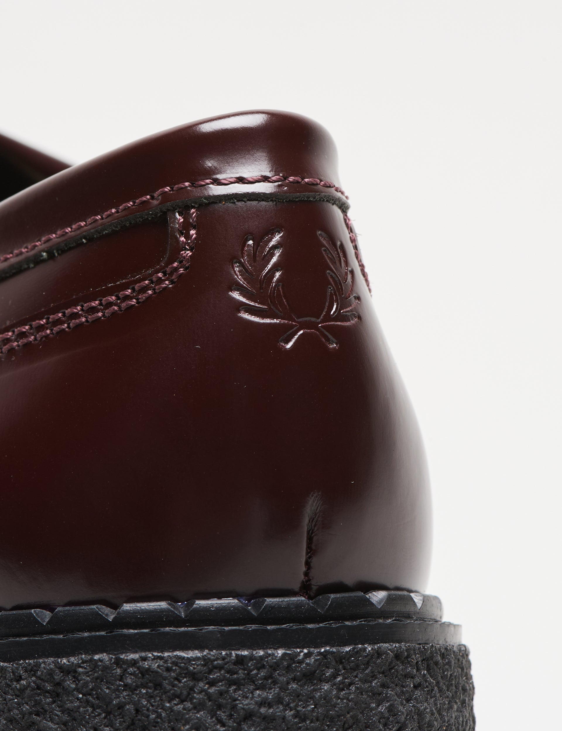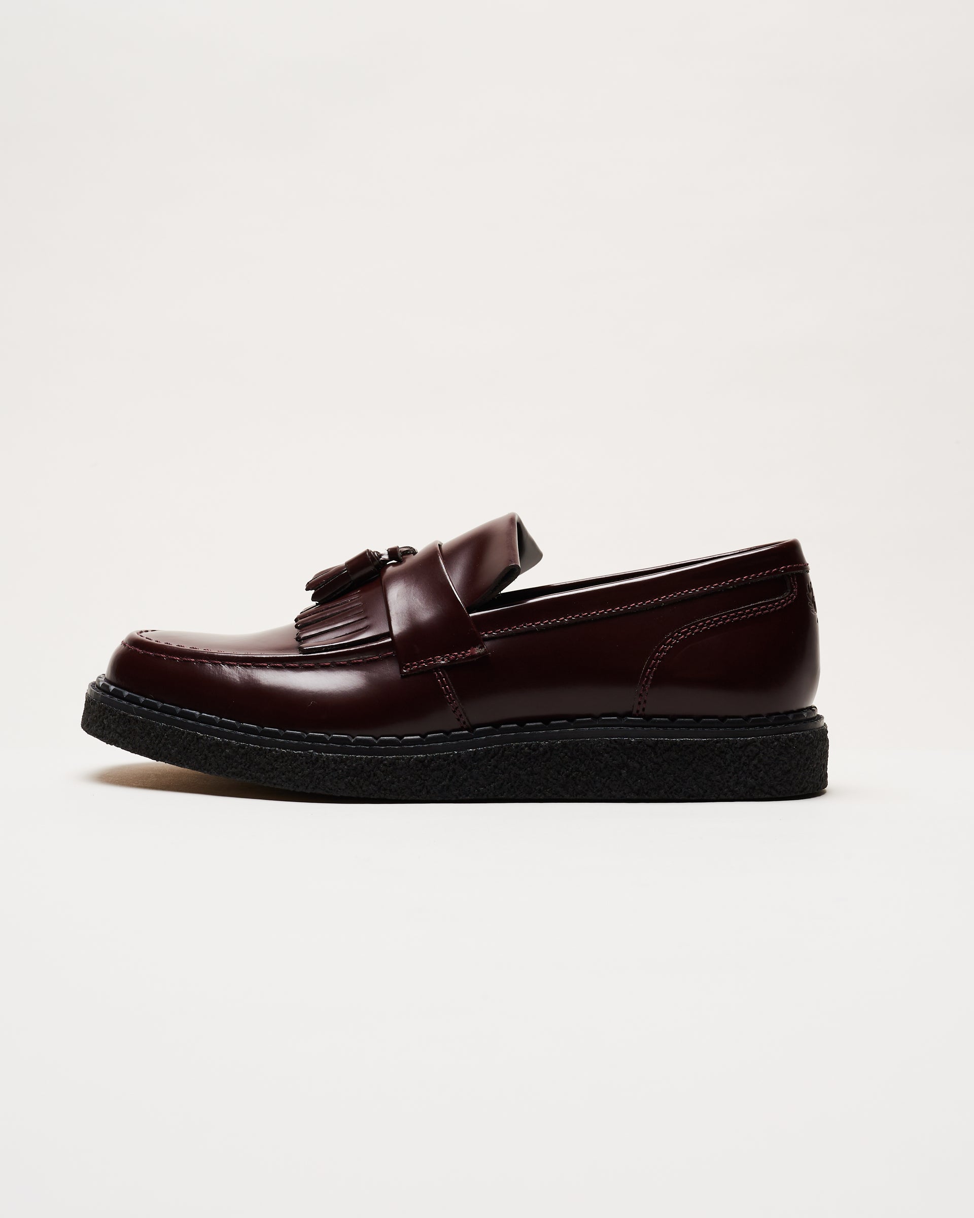 Fred Perry and George Cox share a deep connection, each brand having been adopted by their own distinct youth subcultures over generations. We continue our partnership with Fred Perry with a new tassel loafer style. Brutal and bold, this pair matches our Creeper silhouette with the modernist sensibilities of Fred Perry.
