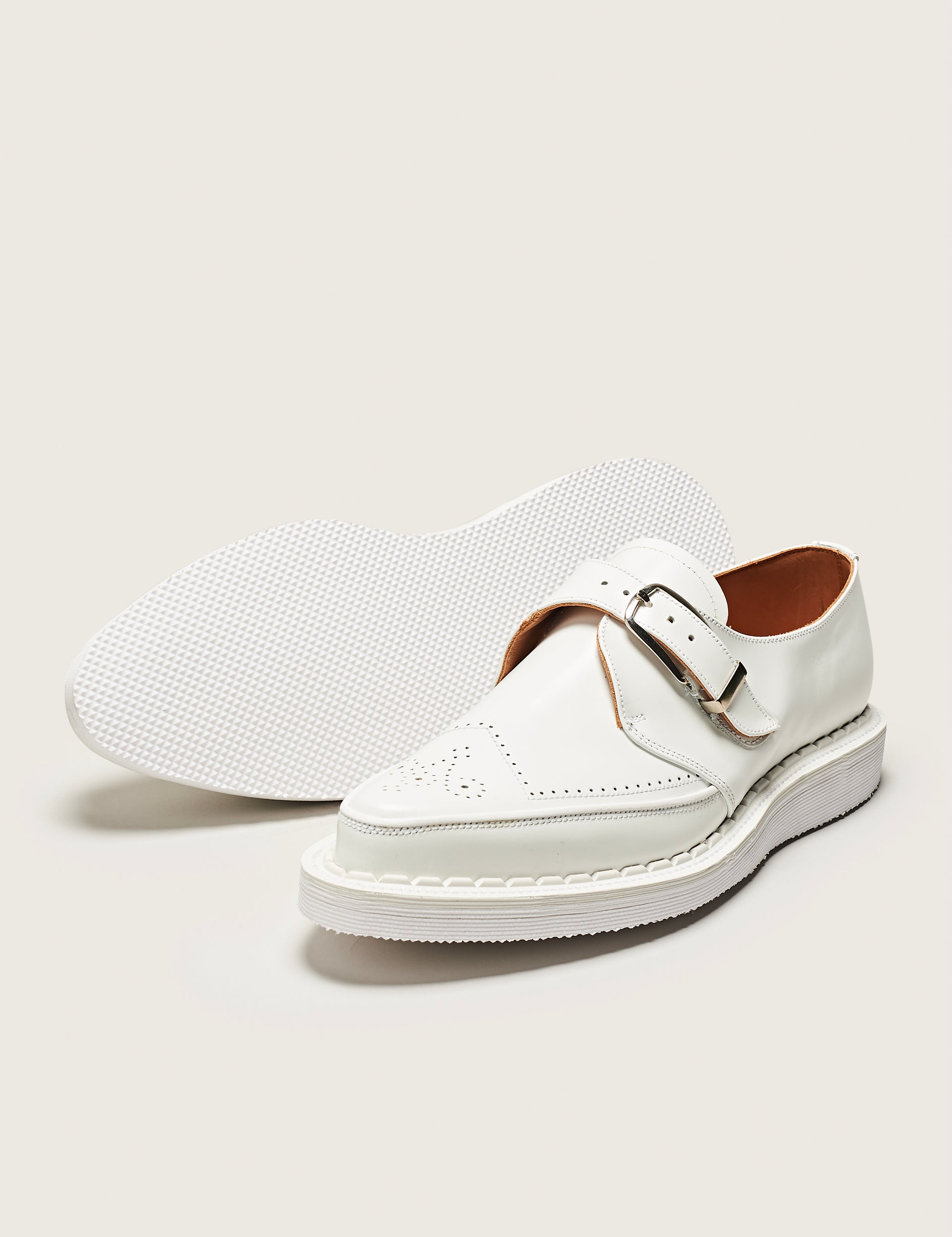 Since he first donned them in the 1970s, our signature 593 Mersey style has been synonymous with his name. Now, we are proud to officially call them by their long unofficial title. The Strummer Monk is handsome and hard-edged in equal measure. A lightweight yet heavy-hitting style, this classical pointed Creeper silhouette has a thinner EVA sole, which makes it wearable in any setting.