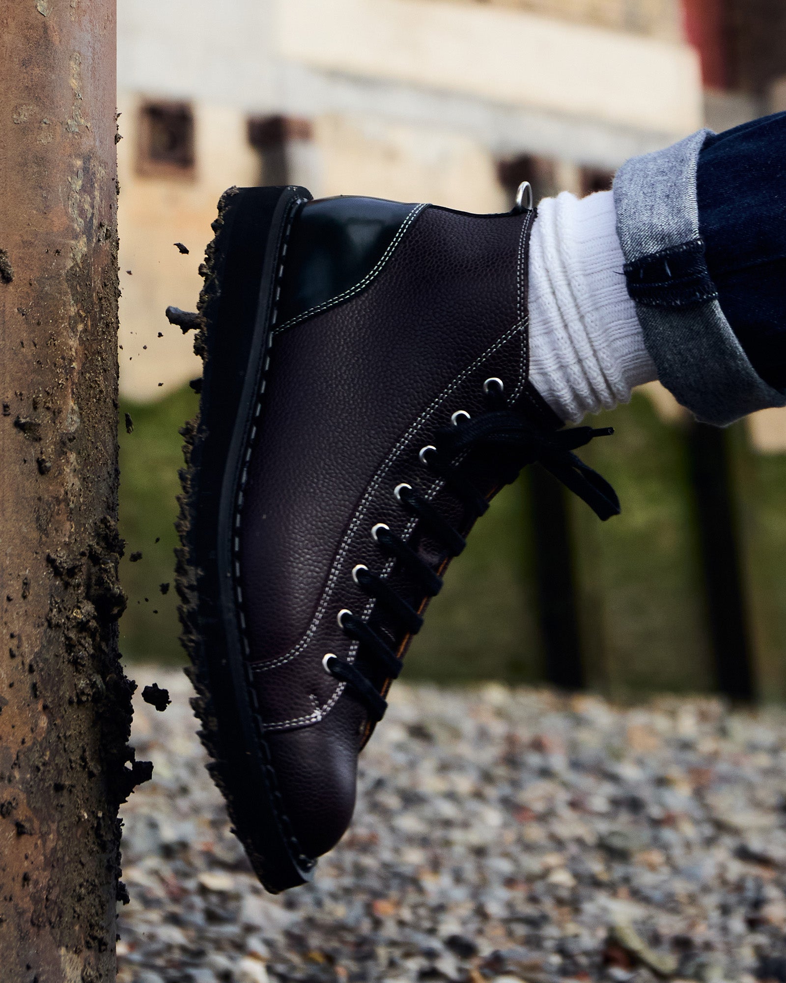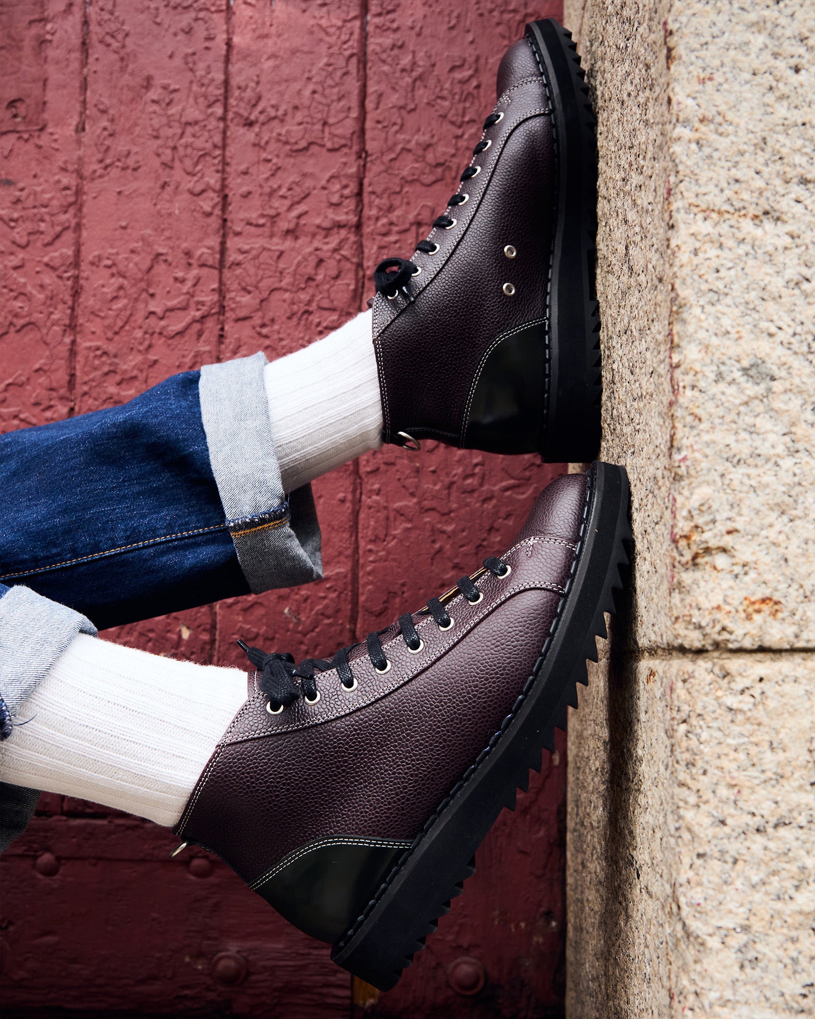 The Monkey Boot, first made famous by the Czechoslovakian army, has always been a heavy-duty uniform style. There's nothing uniform about these boots, however; inspiring a new wave of streetwear, the George Cox Monkey Boot takes the conventional eyelet boot and turns up the volume.