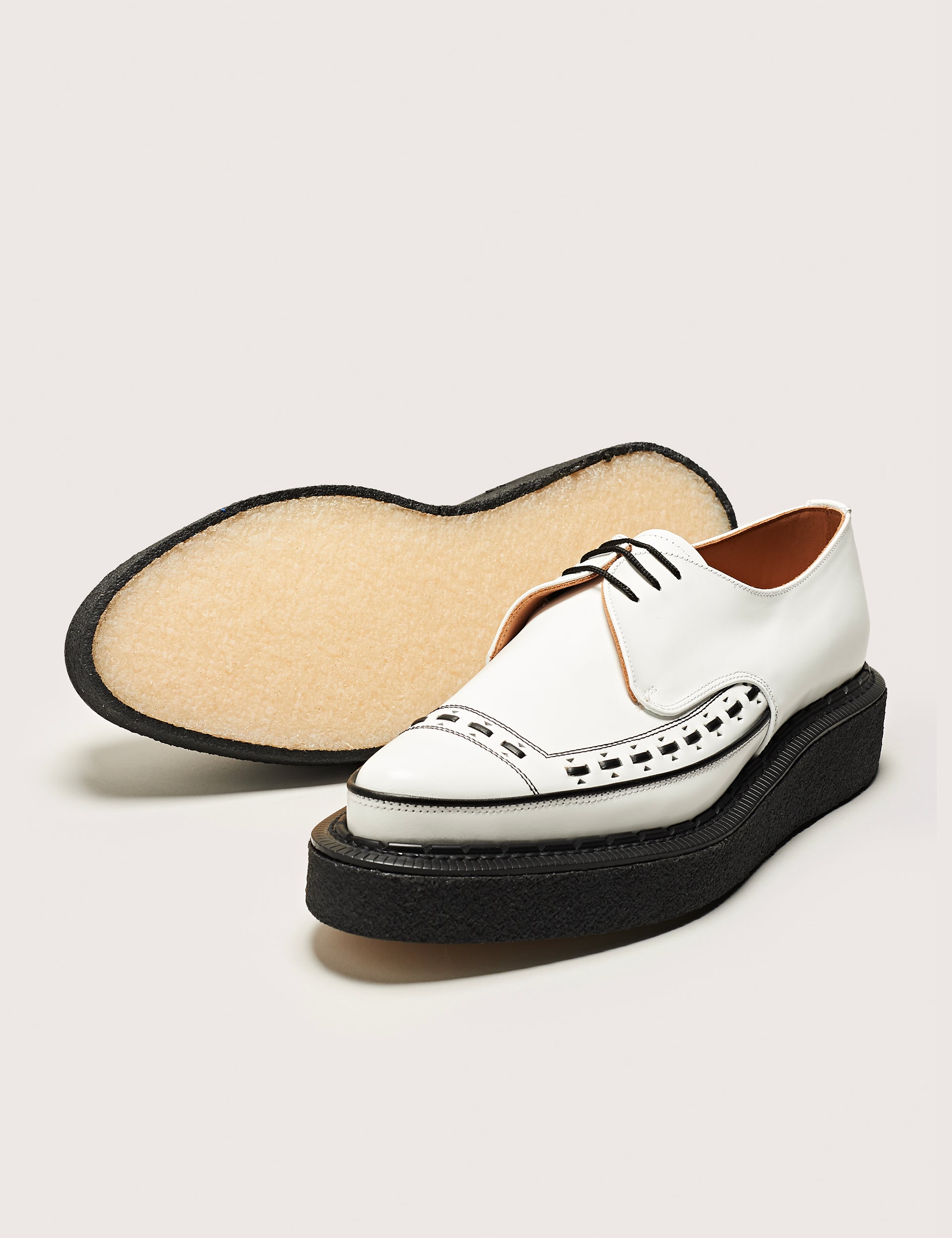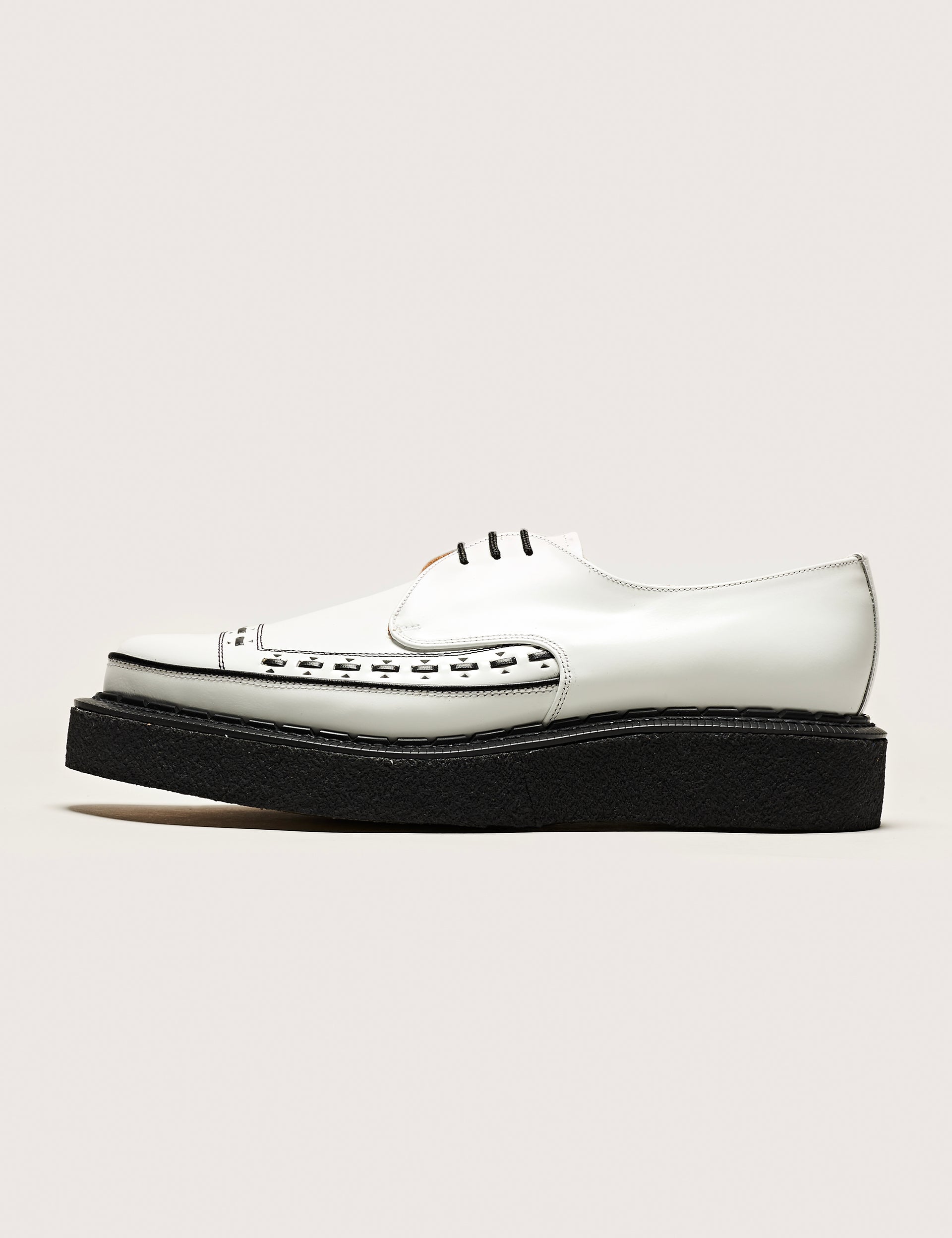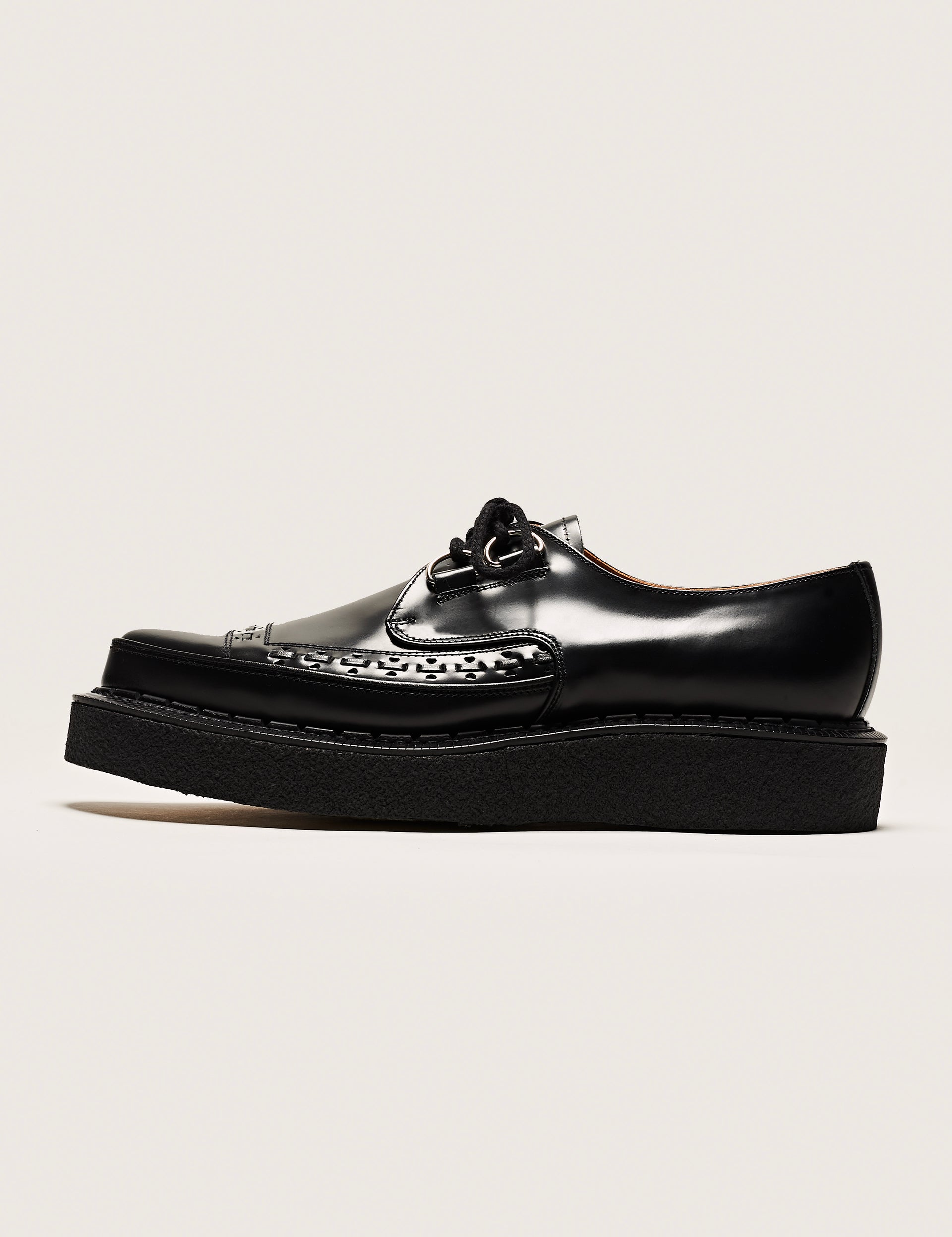 The Diano is sophisticated yet striking. First produced in the late 1950s, it quickly became part of the defining rockabilly look. Deeply rooted in music, it's no wonder it has been favoured by bands and artists for over 60 years. The Diano is the original pointed-toe Creeper, produced on our inimitable coffin-shaped 'Mersey' last. Elegantly proportioned, but uncompromisingly brutal, the Diano has unrivalled flair.