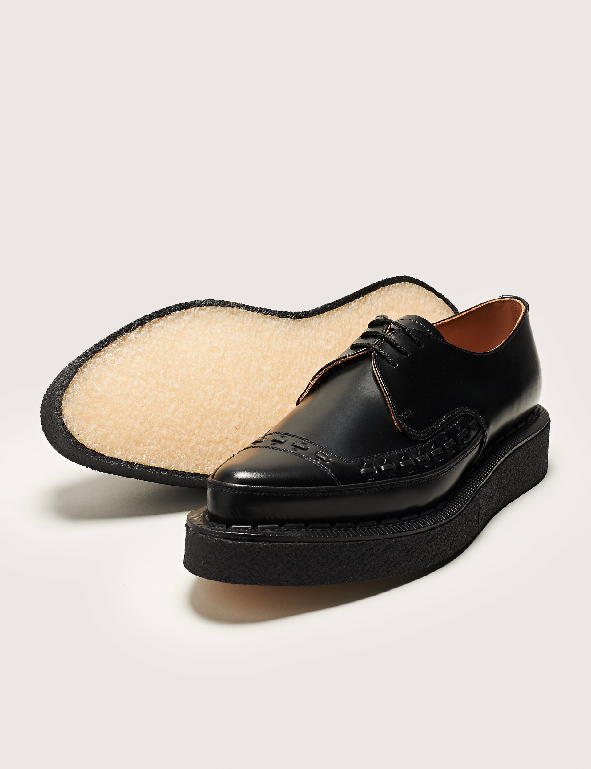 The Diano is sophisticated yet striking. First produced in the late 1950s, it quickly became part of the defining rockabilly look. Deeply rooted in music, it's no wonder it has been favoured by bands and artists for over 60 years. The Diano is the original pointed-toe Creeper, produced on our inimitable coffin-shaped 'Mersey' last. Elegantly proportioned, but uncompromisingly brutal, the Diano has unrivalled flair.