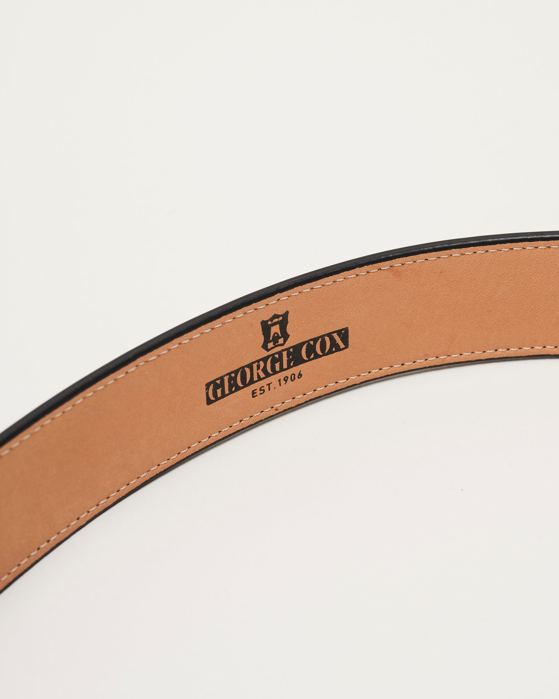 The George Cox belt is designed with the same unapologetic brutality as our Creepers. Constructed using the same materials that appear across our inimitable footwear range, the belt isn’t just an accessory, but a true extension of the George Cox philosophy of making. Confidently stark, the belt features an enlarged version of the buckle and keeper found on our Diano and Strummer Monk styles, and finished at the tip with our signature monk strap end profile.