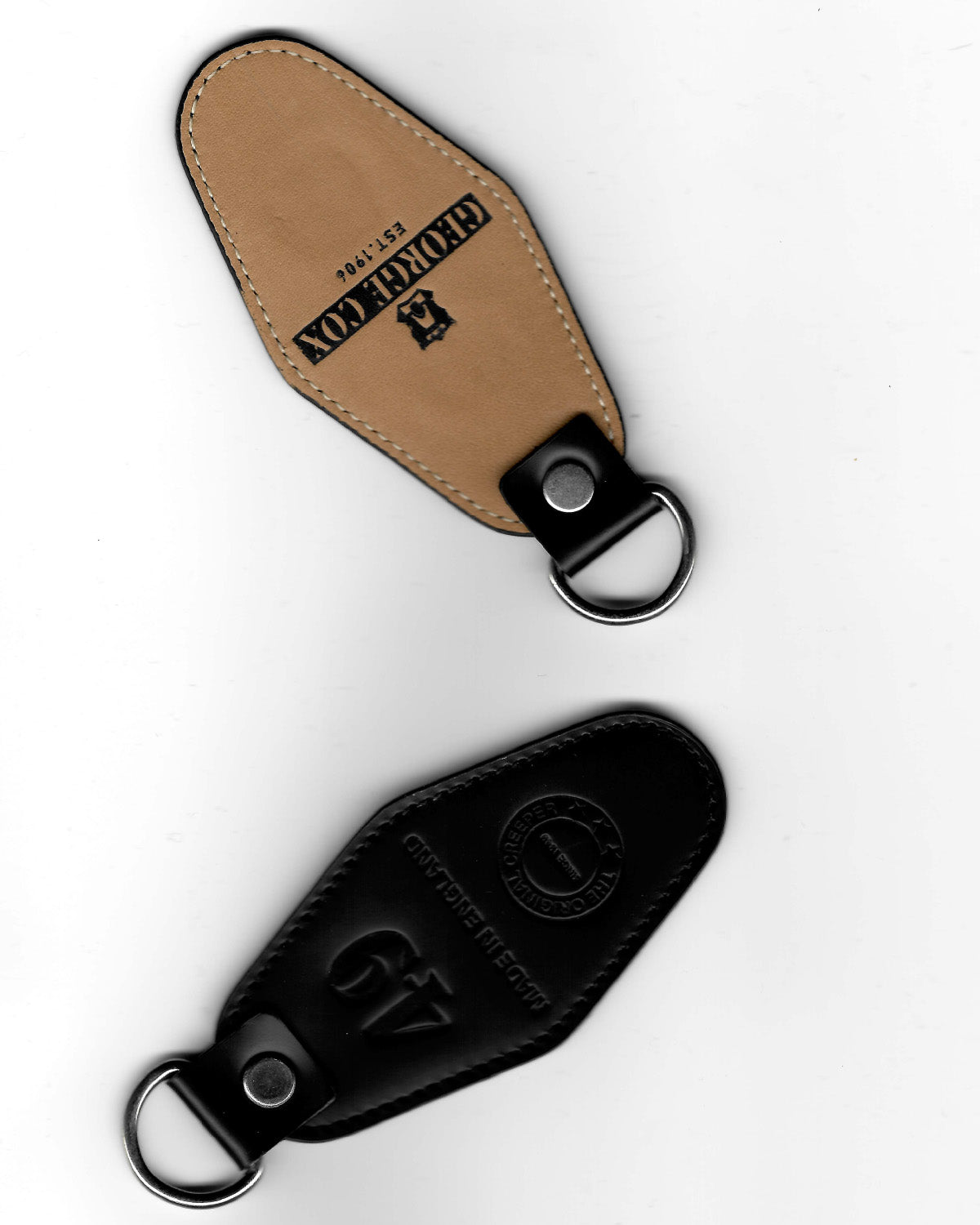The George Cox keyring channels the same unapologetic brutality that defines our Creepers, reimagined in the unmistakable silhouette of a classic motel key fob, a nod to the rockabilly roots woven through the George Cox story. Constructed using the same materials that appear across our inimitable footwear range, the keyring isn’t just an accessory, but a true extension of the George Cox philosophy of making.