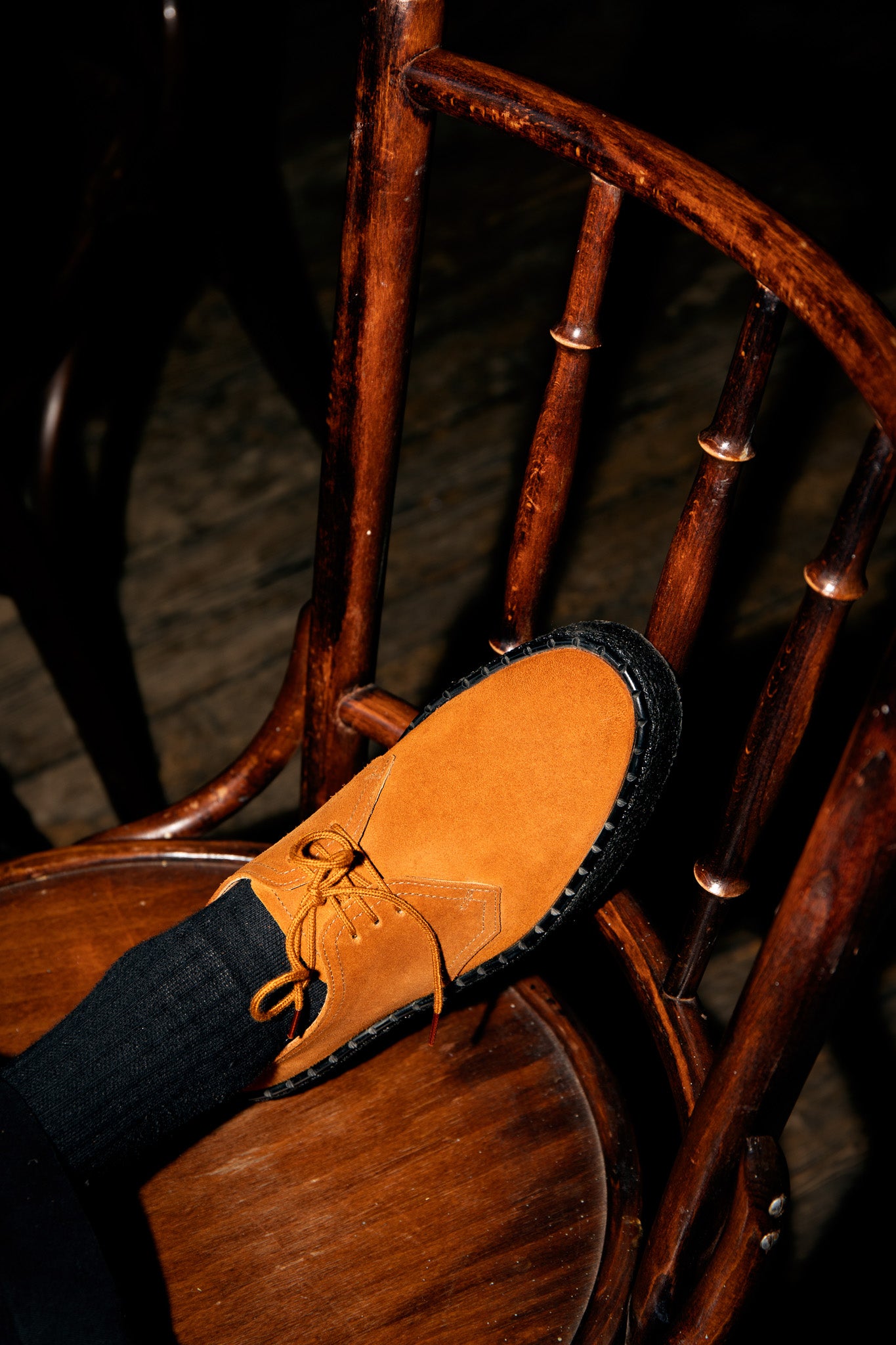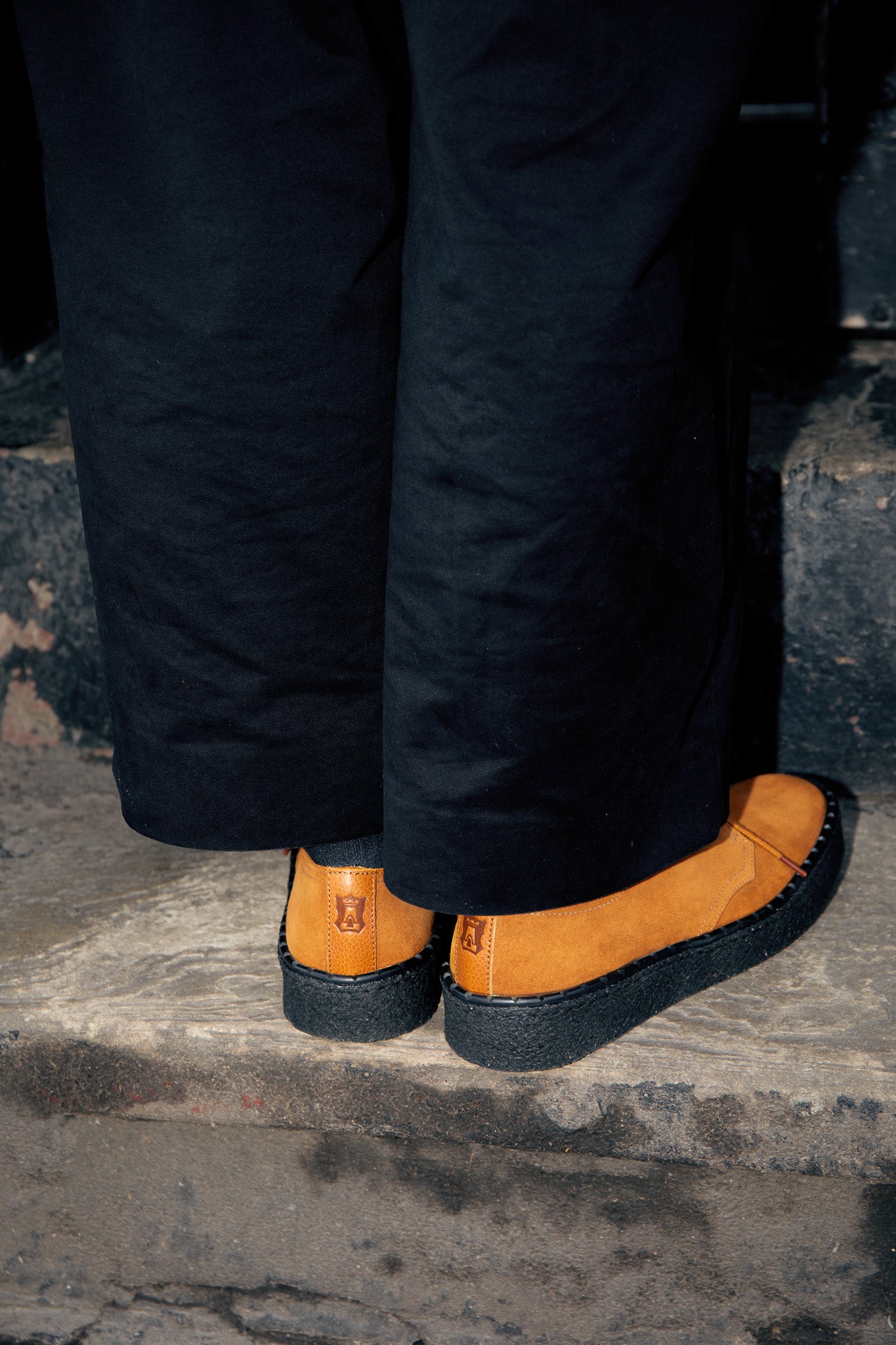 The brutal shape of our Creepers is due to the unique walled lasts we construct them on. The pointed-toe ‘Lazio’ last is a contemporary iteration of the classic ‘Mersey’ shape.
