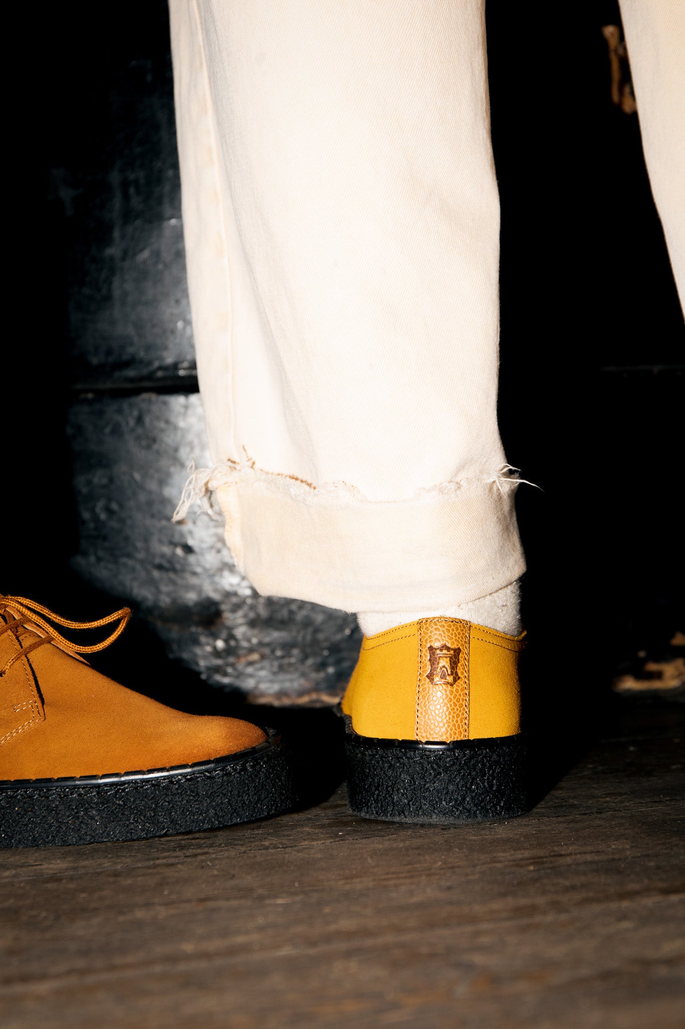 The Crepe wrapped ripple sole is a combination of our durable branded rubber ripple sole with a crepe strip called a ‘foxing’, which is wrapped around the midsole to blend our heritage material with the robustness of the rubber outsole.