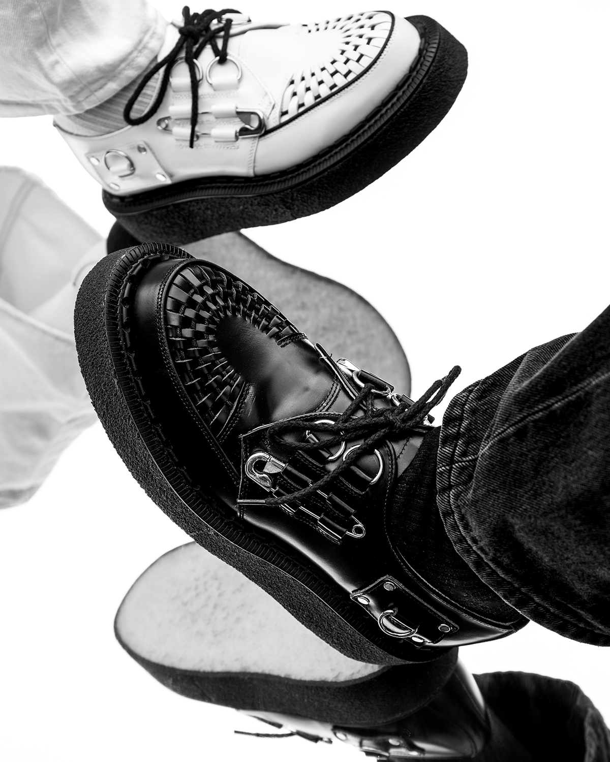 Extra hardware and extra attitude. Flanked by a safety pin on both sides. The Skipton is what you picture when you think of Creepers: A statement of true originality. Since their first outing in the 1970s during the rock 'n' roll revival, the Skipton has been a defining subcultural style. Adopted across generations, the Skipton is the flagbearer for George Cox, the Creeper and the rebellious spirit.